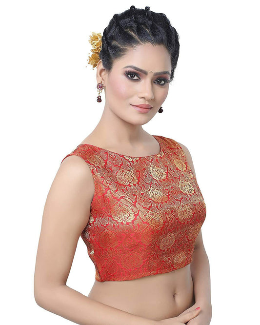 Red Sleeveless Saree Blouse, Indian Saree Blouse Readymade Saree Blouse, Indian Saree Blouse, Readymade Sari Blouse, Saree Blouse Traditional Indian Saree Blouse, Ready To Wear Blouse, Indian Blouse