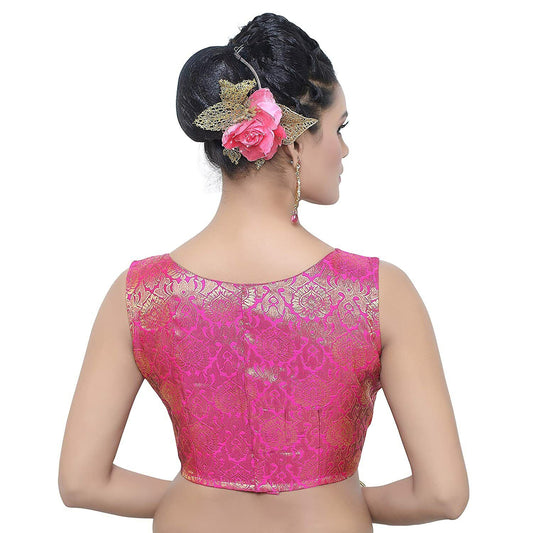 Hot Pink Sleeveless Saree Blouse, Indian Saree Blouse Readymade Saree Blouse, Indian Saree Blouse, Readymade Sari Blouse, Saree Blouse Traditional Indian Saree Blouse, Ready To Wear Blouse, Indian Blouse