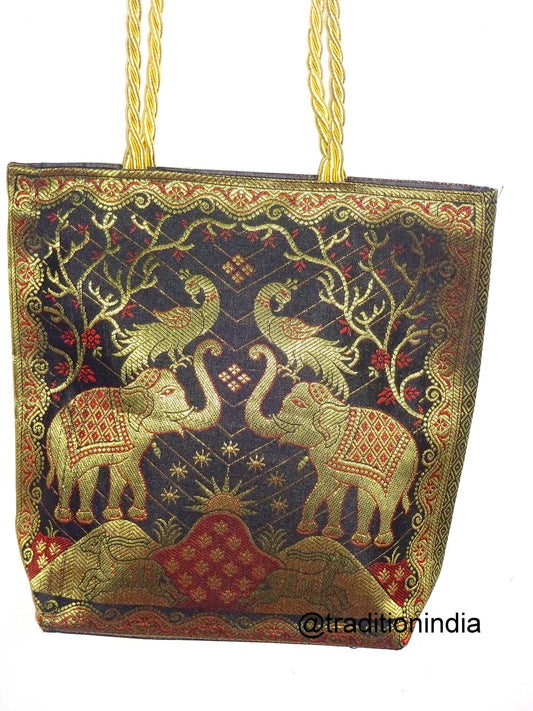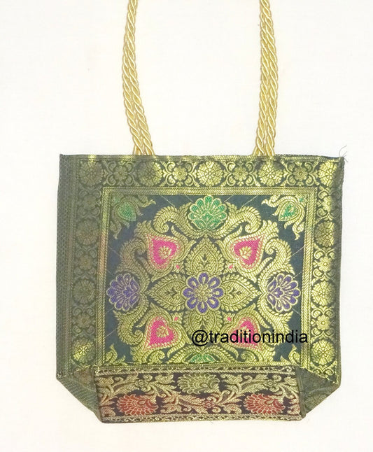Indian Handmade Purse, Women's Banarasi Silk Bag , Girl's Shoulder Bag, Banarasi Brocade Bag, Return Gift Item, Wedding Bag, Shagun Bag