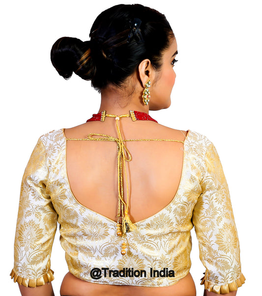 Golden Banarasi Silk Sari Blouse, Silk Saree Blouse, Readymade Saree Blouse, Readymade Sari Blouse, Saree Blouse Traditional Indian Saree Blouse, Indian Blouse