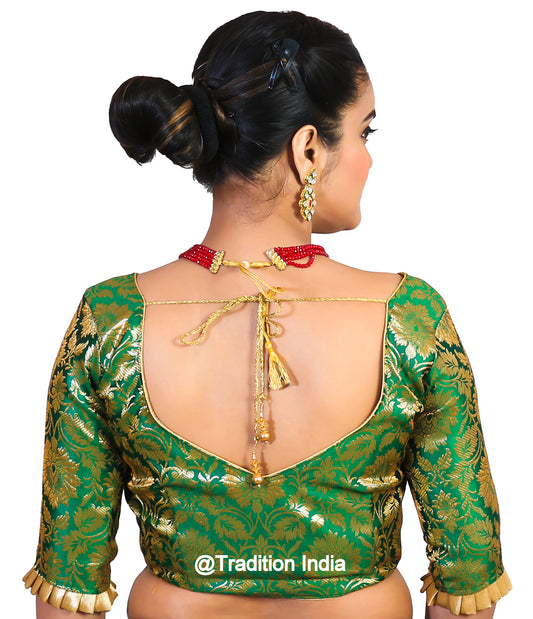 Ready To Wear Green Saree Blouse, Banarasi Silk Saree Blouse, Readymade Saree Blouse, Readymade Sari Blouse, Saree Blouse Traditional Indian Saree Blouse, Indian Blouse