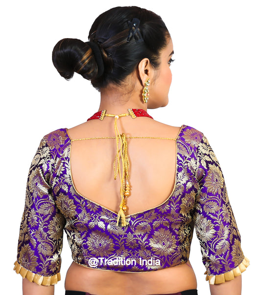 Purple Saree Blouse, Banarasi Silk Saree Blouse, Readymade Saree Blouse, Readymade Sari Blouse, Saree Blouse Traditional Indian Saree Blouse, Indian Blouse
