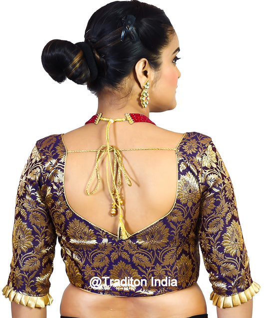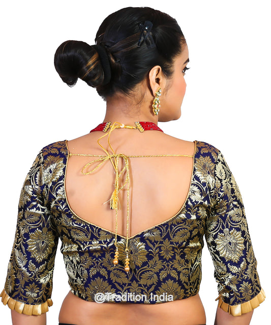 Designer Navy Blue Saree Blouse, Banarasi Silk Saree Blouse, Readymade Saree Blouse, Readymade Sari Blouse, Saree Blouse Traditional Indian Saree Blouse, Indian Blouse