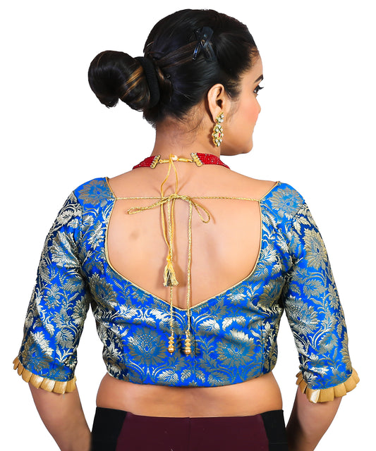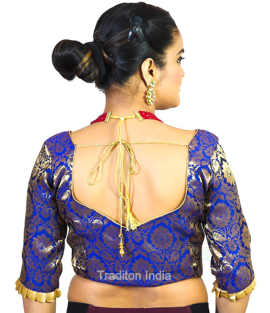 Ready To Wear Royal Blue Saree Blouse, Banarasi Silk Saree Blouse, Readymade Saree Blouse, Readymade Sari Blouse, Saree Blouse Traditional Indian Saree Blouse, Indian Blouse