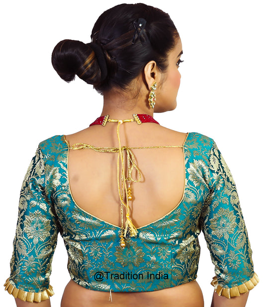 Ready To Wear Teal Green Saree Blouse, Banarasi Silk Saree Blouse, Readymade Saree Blouse, Readymade Sari Blouse, Saree Blouse Traditional Indian Saree Blouse, Indian Blouse