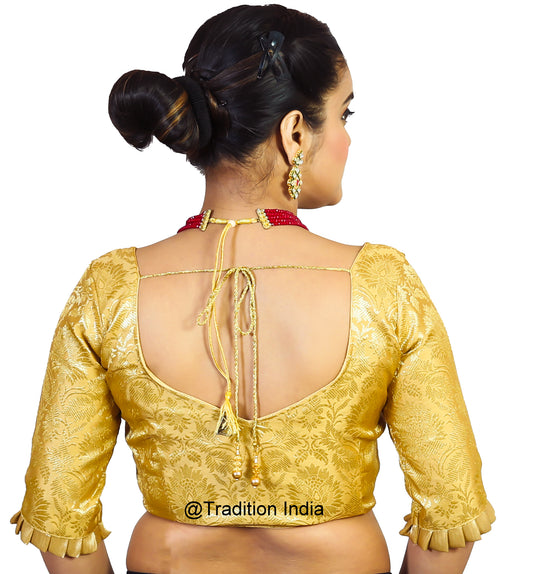 Golden Saree Blouse, Banarasi Silk Saree Blouse, Readymade Saree Blouse, Readymade Sari Blouse, Saree Blouse Traditional Indian Saree Blouse, Ready To Wear Blouse, Indian Blouse
