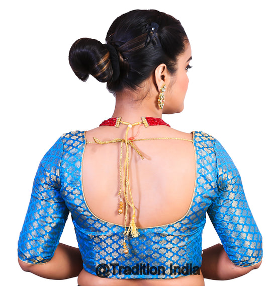 Blue Saree Blouse, Designer Saree Blouse, Ready To Wear Blouse, Indian Saree Blouse, Readymade Sari Blouse, Saree Blouse
