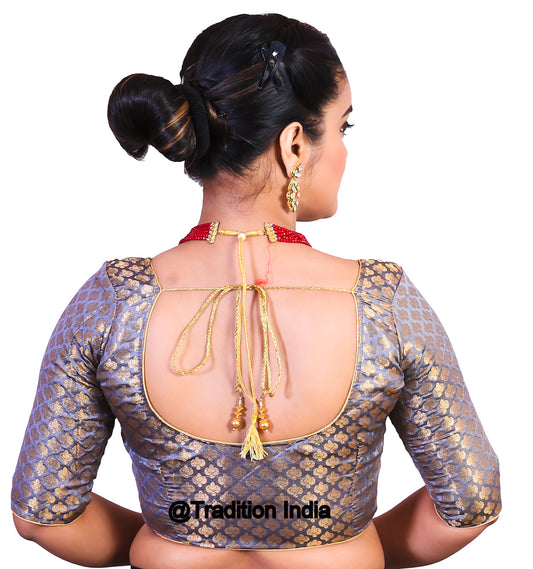 Ready To Wear Grey Blouse, Designer Saree Blouse, Indian Saree Blouse, Readymade Sari Blouse, Saree Blouse