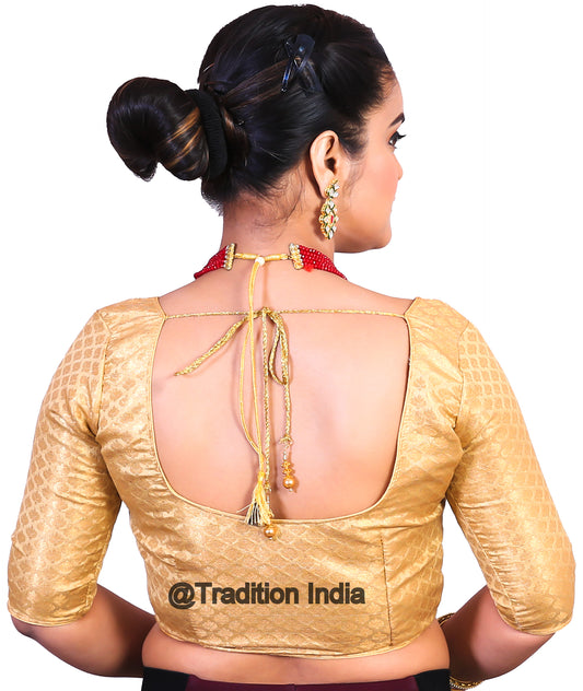 Golden Saree Blouse, Designer Saree Blouse, Indian Saree Blouse, Readymade Sari Blouse, Saree Blouse