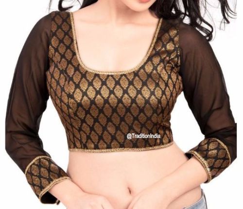 Black 3/4 Georgette Sleeves Saree Blouse, Designer Saree Blouse, Traditional Blouse, Indian Saree Blouse, Ready To Wear Blouse, Indian Saree Blouse, Sari Blouse