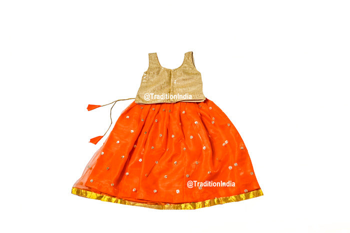 Ready To Wear Orange & Golden Girls Lehenga Choli Set, Indian Kids Dresses, Designer Lehenga Blouse, Girls Lehenga Choli, Kids Outfits, Baby Girls Lehenga